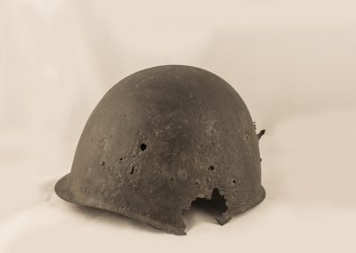 Руски шлем; За време Другог светског рата совјетски (руски) војник, заједно са југословенским партизанима, ослободили су 6. октобра 1944. године, Панчево. Многи совјетски војници погинули су у тим борбама. Један од њих био је и војник чији се шлем чува у Народном музеју Панчево. На шлему се види рупа од метка.